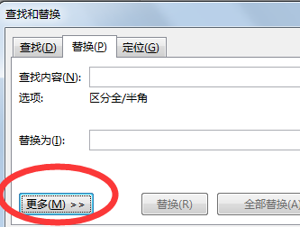 2、然后在打开的“替换”对话框中点击“更多”。