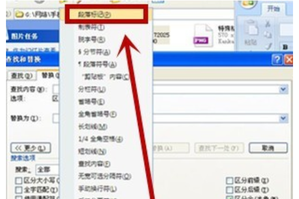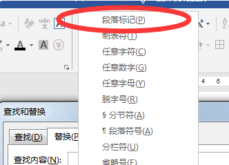 2.将光标定位在“查找内容”旁的输入框内,再点“特殊字符”,选择“段落标记”或者“人工换行符”,使“替换为”旁的输入框保持为空;