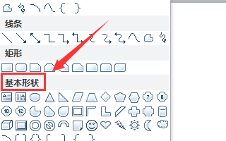 4、点击形状选项在其子级菜单里找到基本形状选项