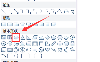 5、在基本形状选项内找到椭圆形选项