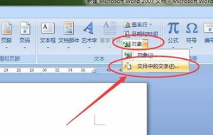 3、在右侧找到 "对象", 单击右侧的下拉标志, 选择 "文件中的文本", 然后单击 "进入"。