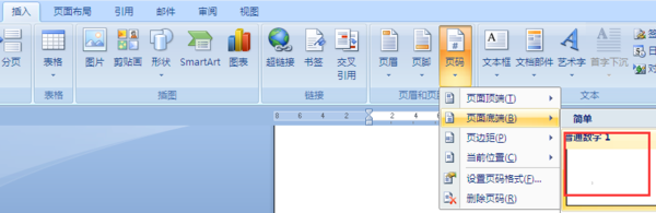 3、将光标放在第1页(奇数页),单击插入----页码----页面底端----普通数字1;