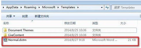3、路径窗口如下,可以找到这么一个文件Normal.dotm,这是一个默认的样式表。