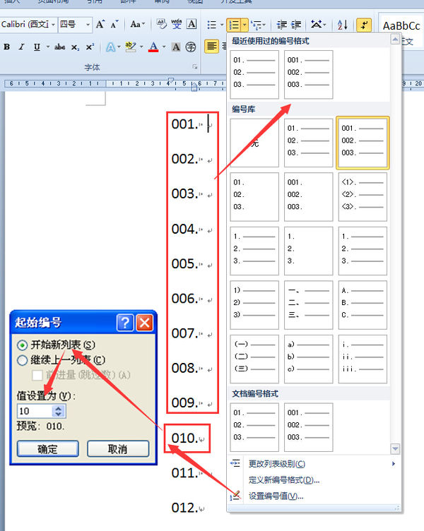 word 的自动编号如何修改为"001至999"三位?