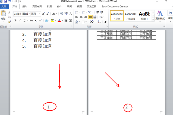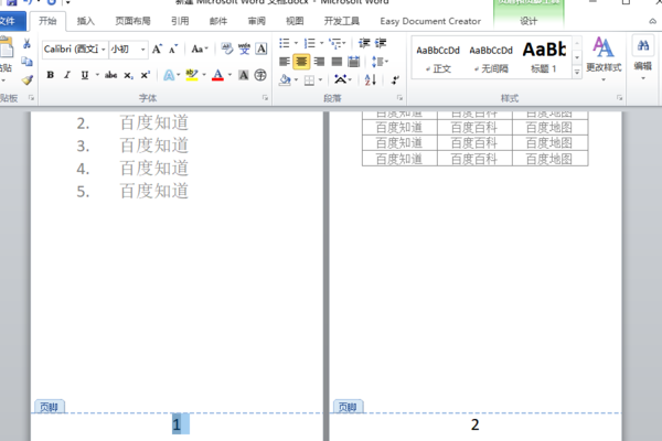 1.打开一份有多页的文档,需要在每一页的页脚设置连续的页码,当前鼠标定位在第一页。