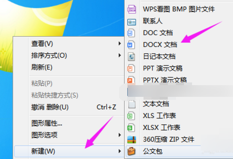 1、先新建一个word文档(桌面空白处单击,选择【新建-DOCX文档】)。