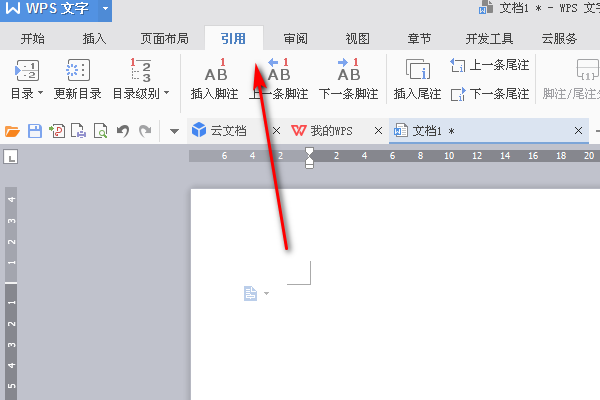 2、打开之后在工具栏里面就可以看到有个引用选项,点击这个选项。