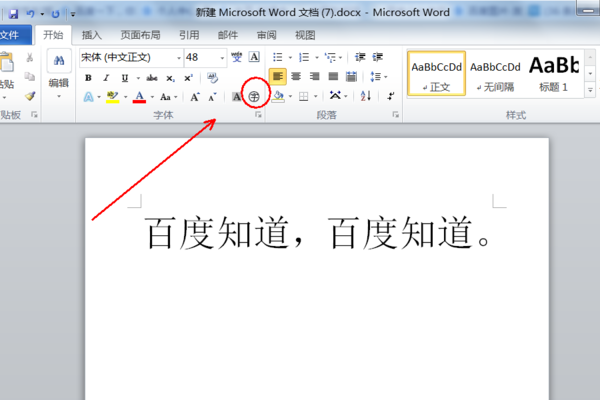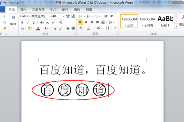 3、返回主文档,发现成功在Word文档中文字上画圈。