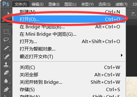1、打开Photoshop软件,点击左上角的“文件”并其中的“打开”。