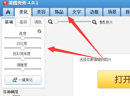 5、还可以打开光影魔术手,点击左上角的“打开”按钮,选择一张图片。