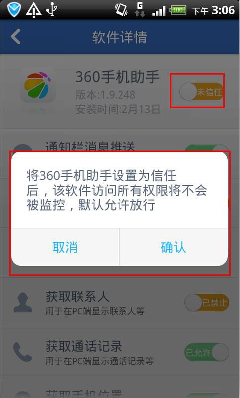 另外,也可直接点击软件后面的信任按钮,将该软件添加为信任,那么管家将不会监控该软件的一切操作:
