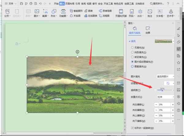 3、最后,选择“透明度”,并根据自己的需要调整值。您主要可以为文档中的图片设置透明颜色。