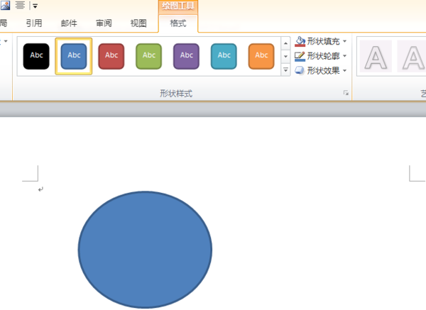 4、返回主文档,按住键盘“shift”键的同时点击鼠标左键并拖动即可画出圆形,上方的“形状样式”可以改变圆形的颜色等。