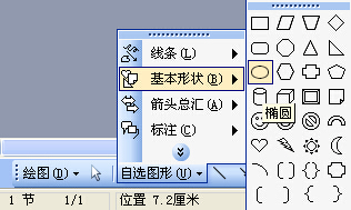 1、单击绘图工具栏---->自选图形---->基本形状----> 椭圆工具,如图所示;