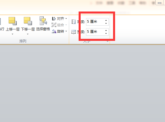 8、 在“大小”一栏中可设置文本框的大小。