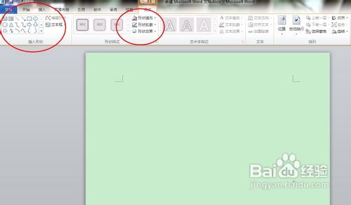 在左上角的工具中点击边框上的下拉列表即可调用各种word自带的图形,在中间位置的颜色花画板中我们可以对话好的图形进行上色。