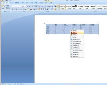 7、选定表格一行,右击,在弹出的菜单中可以对表格进行操作,可以重新插入表格的一行或删除表格的一行。同理对列进行操作的话可以删除和增加列;
