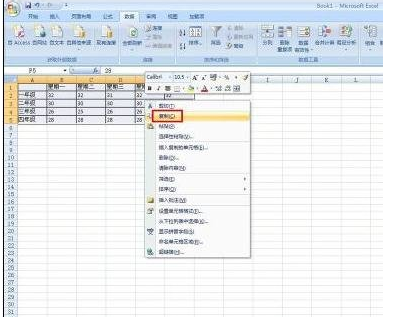 步骤四: 再选择刚才粘贴过来的整个表格区域,并单击右键选择“复制”。