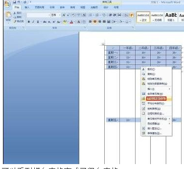8、在弹出的菜单中选择"表格属性”可以对表格的颜色,边框,底纹,高度等进行设置。