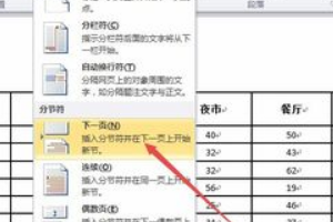 1、首先,将光标移动到表格的前一行,点击“页面布局”菜单中“分隔符”下拉选项中的“下一页”选项。