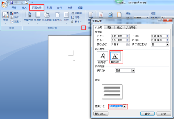 可以在页面设置对话框中设置,其具体的操作步骤: