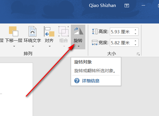 5、在随后打开的排列功能组中单击旋转按钮,在弹出的快捷菜单中单击垂直翻转,即可。
