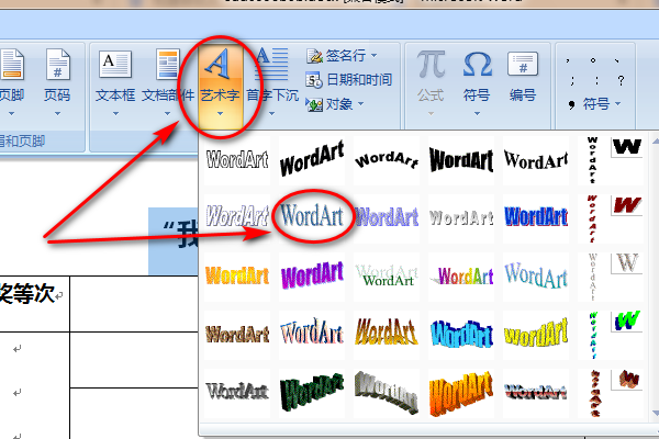 方法二、插入艺术字:
