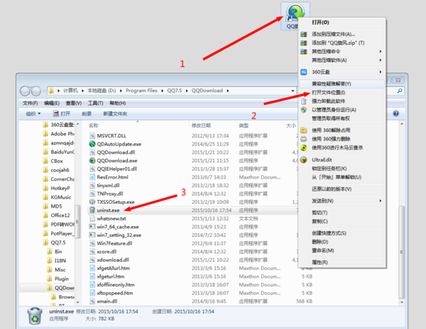右键想要卸载的软件图标→打开文件位置→找到目录下的uninst.exe→