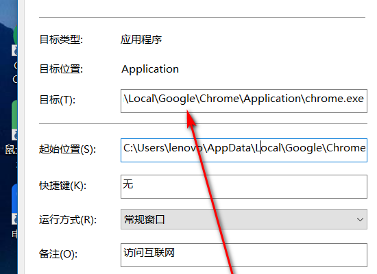 3、在弹出的界面中,复制“目标”中关于文件夹的部分。