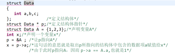 换种说法,如果我们在C语言中定义了一个结构体,然后申明一个指针指向这个结构体,那么我们要用指针取出结构体中的数据,就要用到“->”。