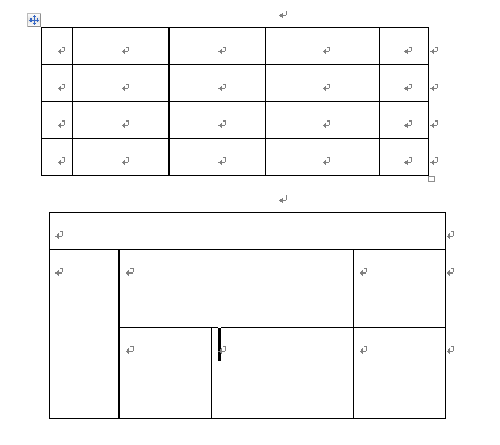 第一个不等距表格是通过:插入>表格>插入表格,然后拖动线条实现的。