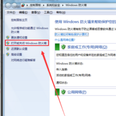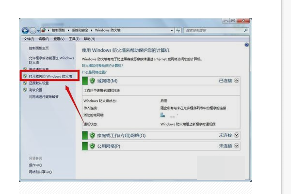 4、在windows防火墙页面,点击左侧菜单中的打开或关闭防火墙选项,如下图所示