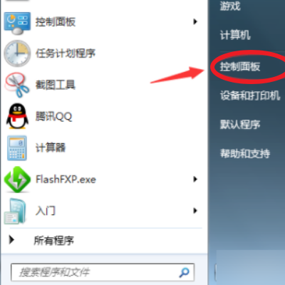 1、点击开始按钮,在开始菜单选择控制面板进入,如下图所示!