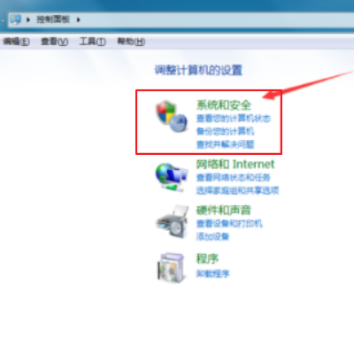 2、在控制面板页面选择系统和安全选项,如下图所示