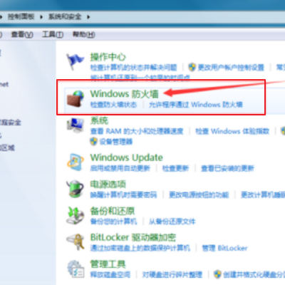 3、在系统安全页面选择windows防火墙进入,如下图所示