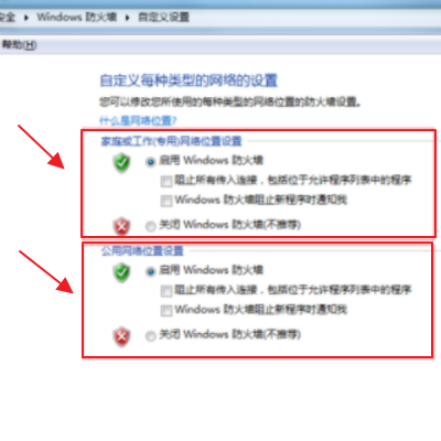 5、进入windows防火墙页面如下图,将所有选项全部设置为关闭状态,点击确定完成设置!