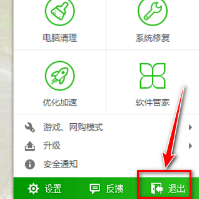 7、最后完成关闭笔记本电脑防火墙后,点击桌面运行的防病毒软件,点击“退出”笔记本电脑中的防火墙和杀毒软件。
