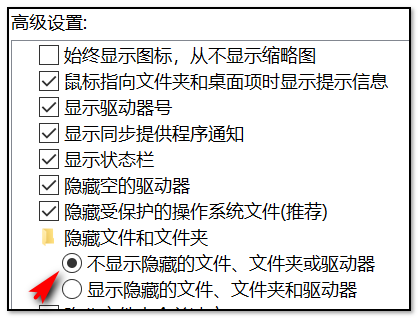 3、然后此时会弹出一个对话框,在此对话框中点击勾选“不显示隐藏的文件、文件夹或驱动器”选项。