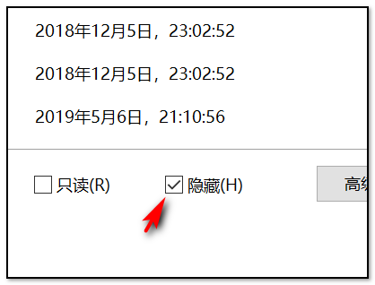 5、在属性对话框中,点击勾选“隐藏”选项,然后就完成了。