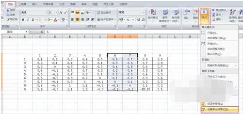 2、首先选中需要隐藏的这两列数据,然后点击开始→格式→设置单元格格式。