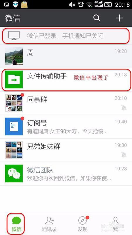 登录后,可以发现文件传输助手出现在微信中了.