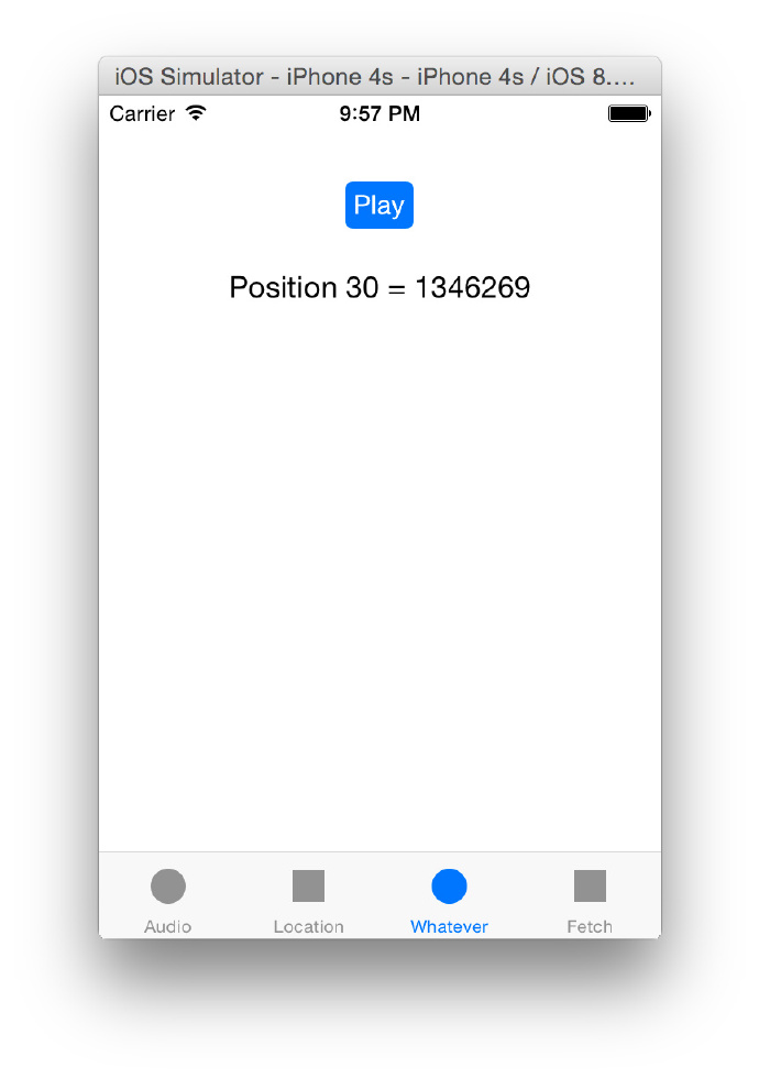 点击play并且你将会看到app计算出的值.现在点击home键然后查看xcode控制台.你应该会看到app依旧会更新数字,与此同时时间依旧在向前走.