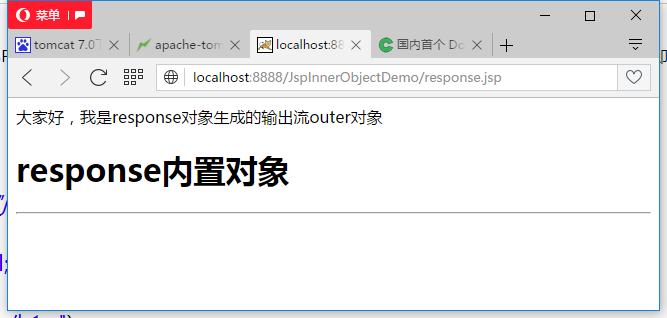 outer.println("大家好,我是response对象生成的输出流outer对象");