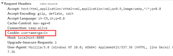 编写servlet代码createcookie.java,保存cookie信息:username=gavin,我们可以看到抓包情况: