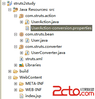 2.对于自定义的类型转换器来说需要提供3个信息:Action名字、Action中待转换的属性名以及该属性对应的转换器。其中Action的名称是通过struts.xml属性文件获得的、Action中待转换的属性名是通过xxx-conversion.properties属性文件中的key来获取,该属性对应的转换器是通过key所对应的value来获得的。