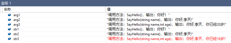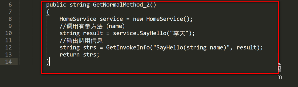 string strs = GetInvokeInfo("SayHello(string name)", result);