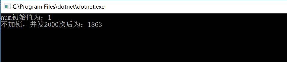Console.WriteLine($"不加锁,并发{list.Count}次后为:" + num.ToString());