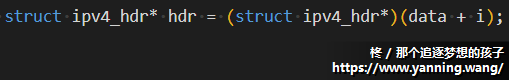 IPv4头部结构体定义如下,由于IPv4头部定义中,各个字段并不是都8位整长的,所以有几个字段是相互并在一起的: