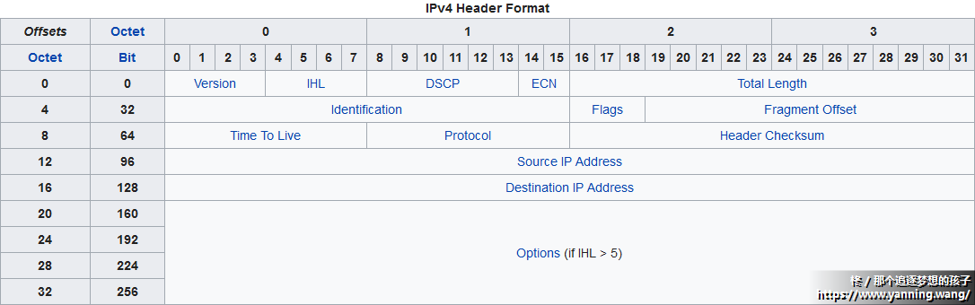 因为IPv4头是允许可变长度的,所以我们的结构体只需要解析到目的地址就够了,后面的可变选项部分在报文头前16字节解析完成之前是不知道会有多长的。