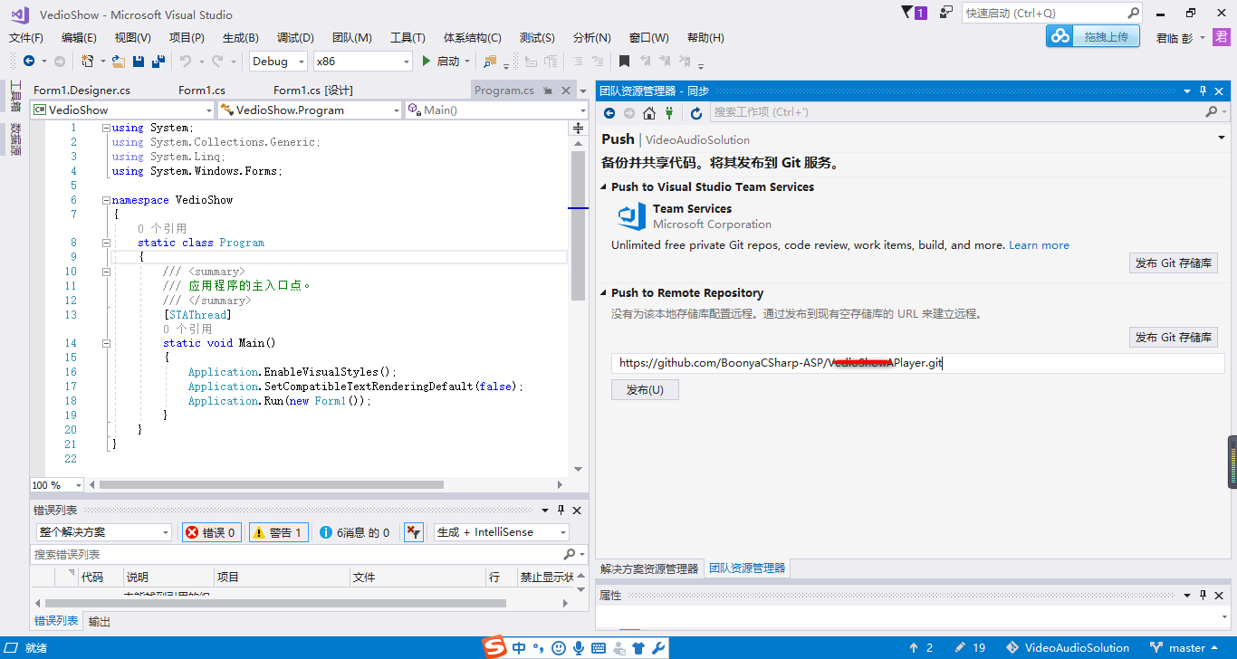 git现在已是无处不在了,只要有代码的地方基本都支持git。本人在使用vs的时候从来没用过git,因为之前都是一个人单独开发c#窗体或者移动端程序,所以也没关注过要把这部分代码提交到svn或者git进行管理。为了使自己的成果可以轻松地在家或者公司进行查看最简单的方式就是提交代码到git上,不过商业的代码我们最好不要私自发布,避免给自己代来麻烦,同时也需要坚守码农的操守和底线(说得难听点叫底裤)。